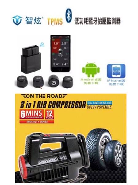 (數字顯示手動胎壓設定)自動打氣機1台+低功耗藍牙胎壓偵測器(胎外式)